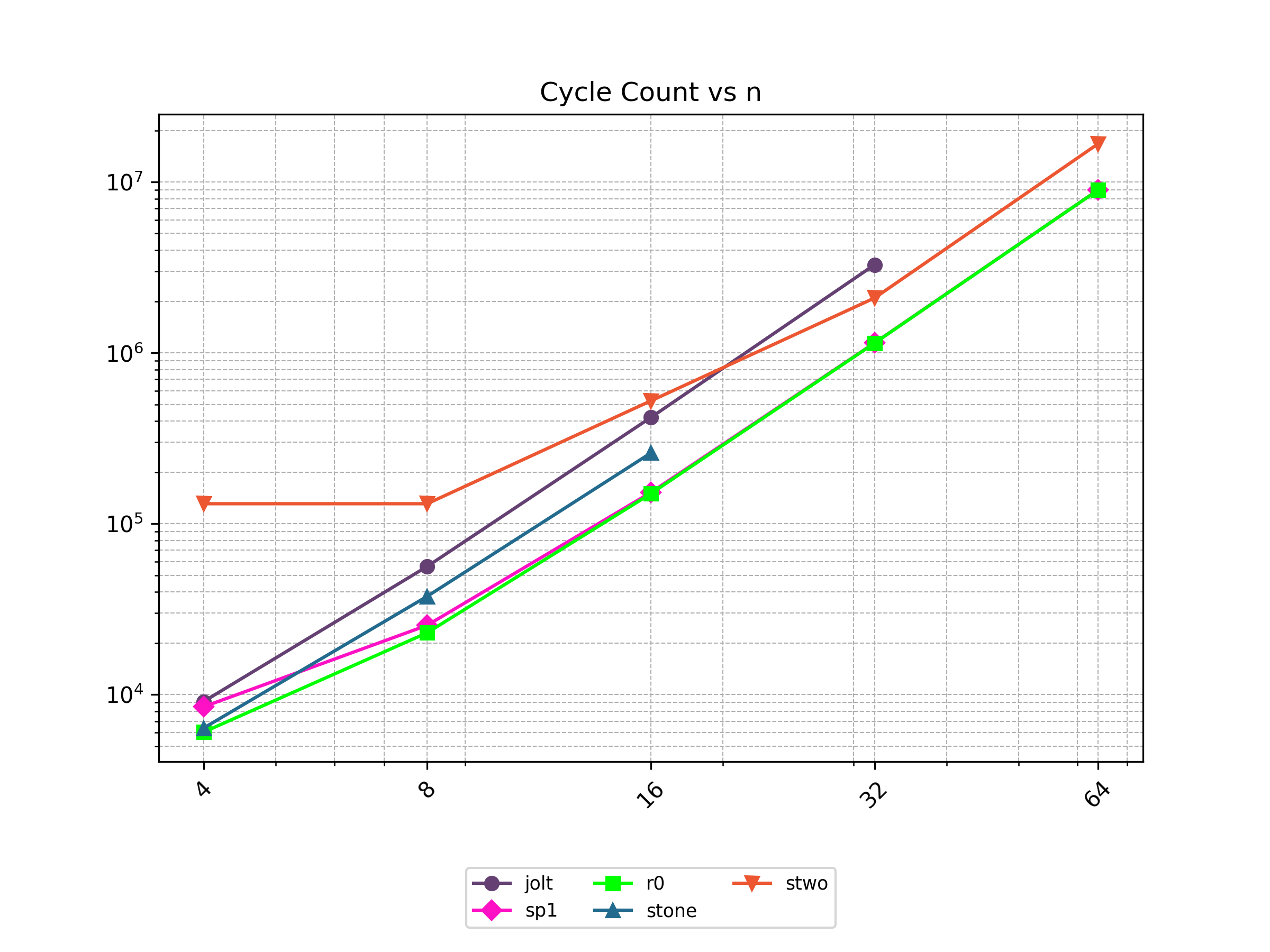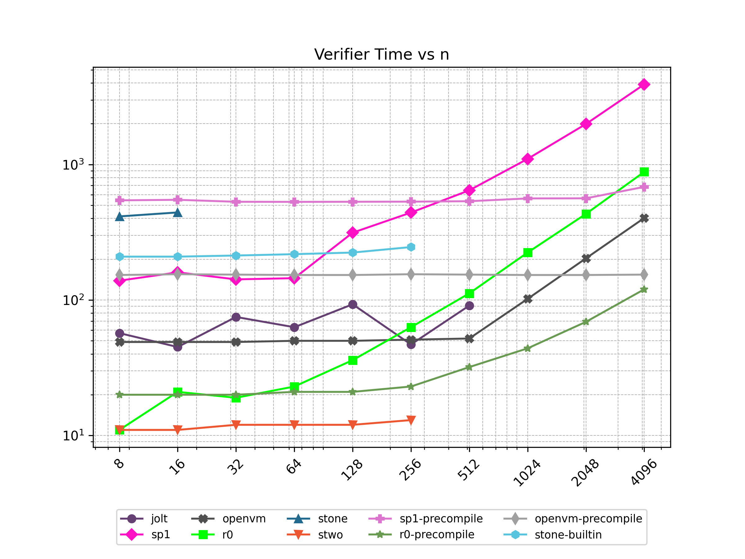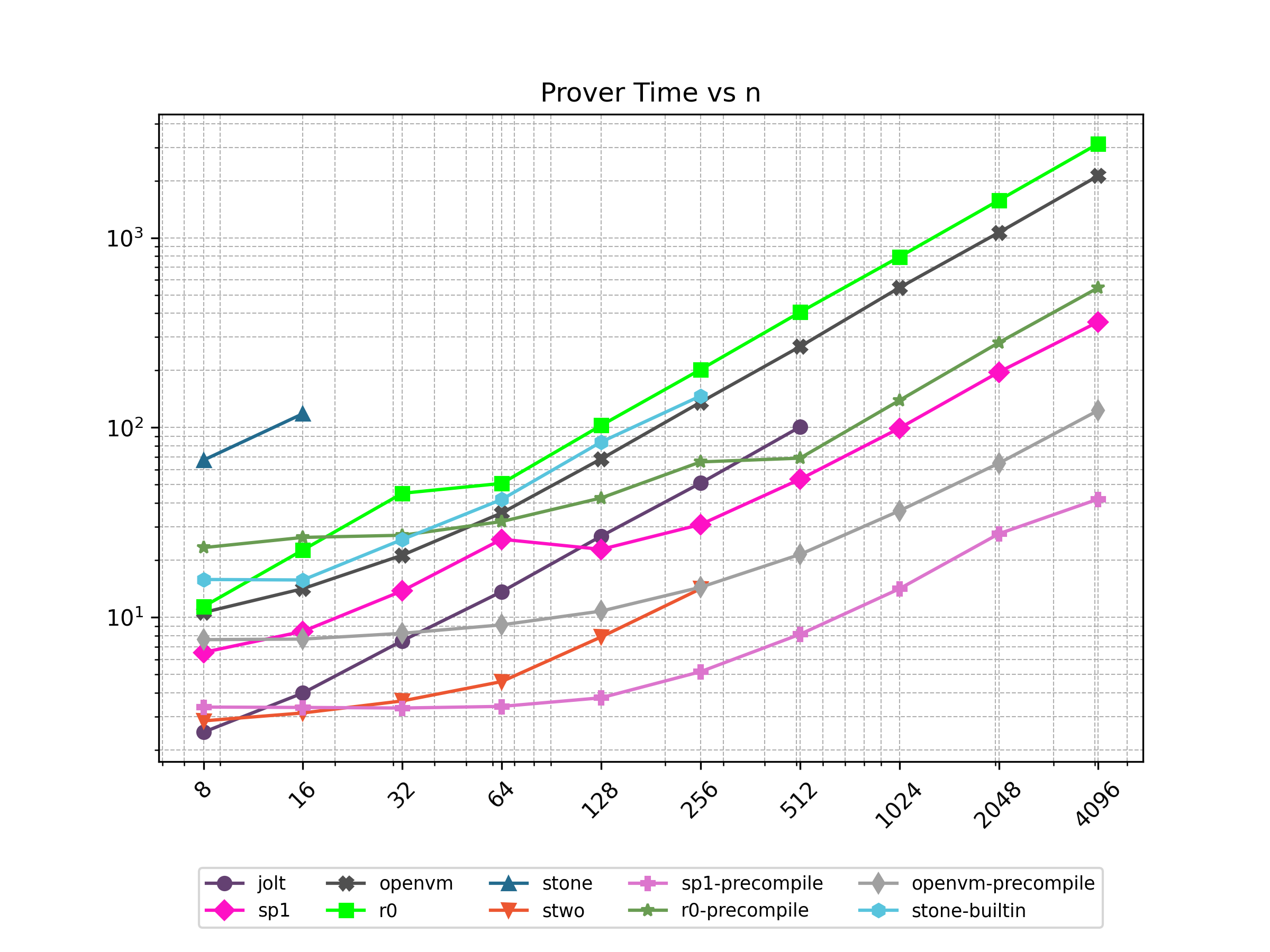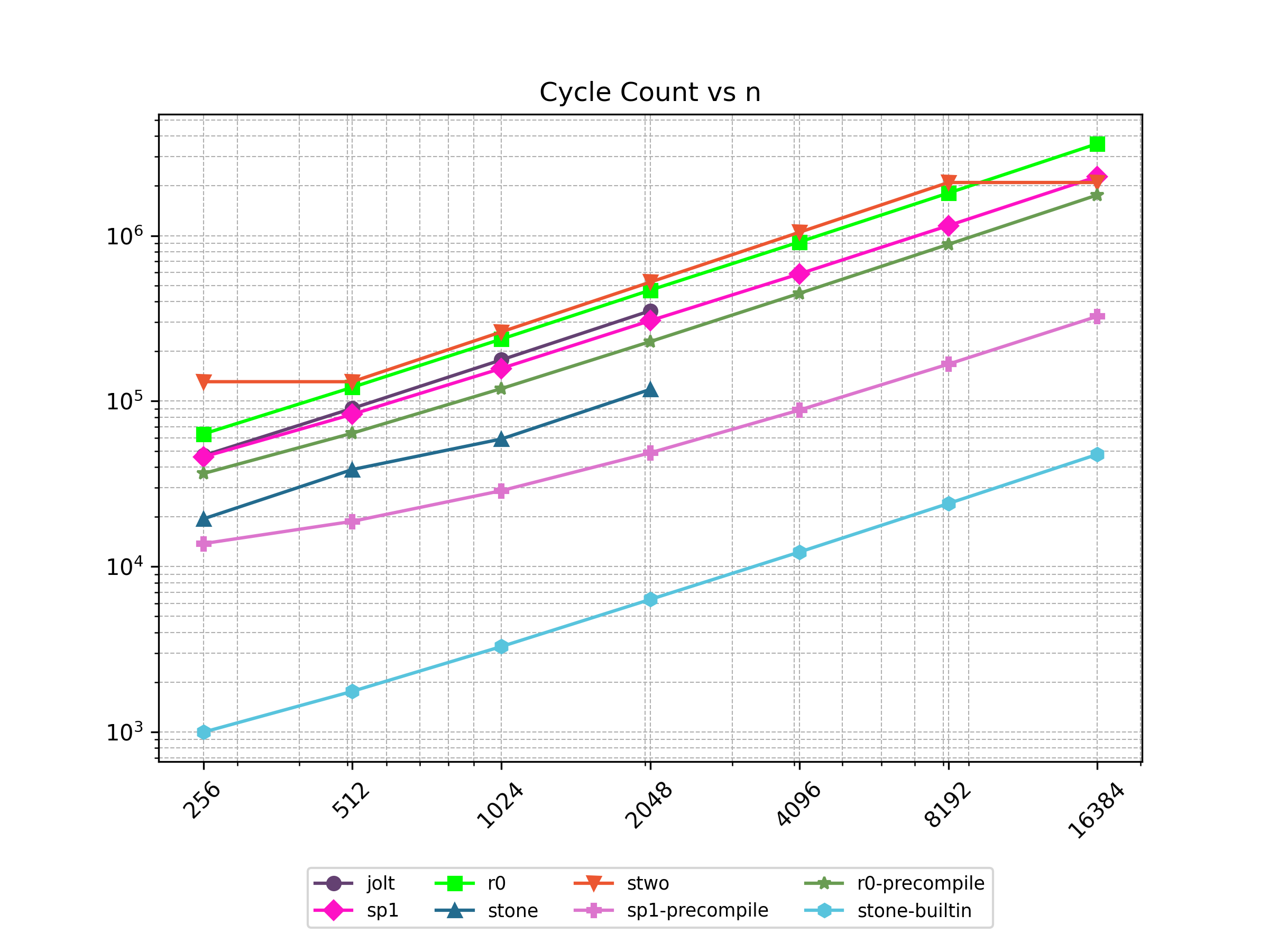 | n | jolt | sp1 | r0 | stone | stwo | sp1-precompile | r0-precompile | stone-builtin |